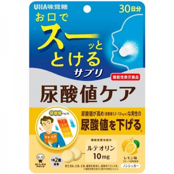 요산 수치 관리를 돕는 UHA 미각당 순간섭취 서플리먼트. 물 없이 간편하게 섭취 가능한 건강보조식품입니다.